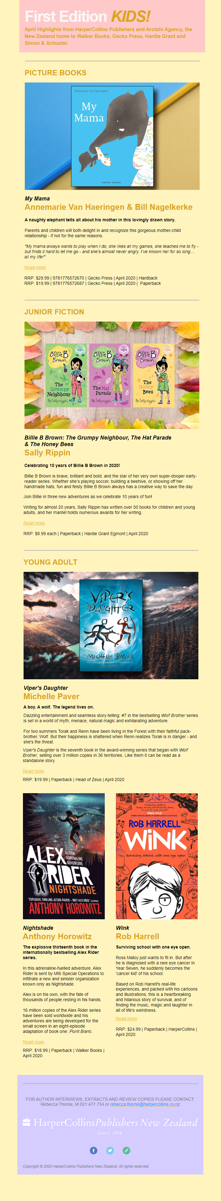 At HarperCollins, I produced a range of newsletters for both internal and external audiences, including the general public, librarians, and school teachers.